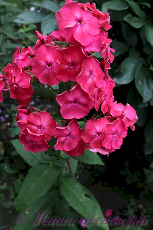 3,5-3,8, 80-90, СП. Светло-красный, матовый, с огромными широко-пирамидальными соцветиями. Цвет очень яркий, но в то же время несколько холодноватый и есть в нём некая-то благородная сдержанность . Сорт никогда не потеряется среди флоксов любой окраски, он виден издалека благодаря цвету, форме и размеру соцветий. ( О.К. Кудрявцева, 2006 )