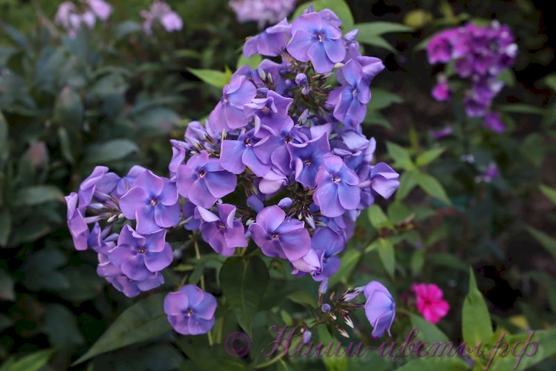 4,0; 100; СР; Голубовато-сиреневый красивый тон, легко меняет оттенок на голубой и синий в зависимости от освещения. Атласная фактура лепестков, цветки колесовидные. Соцветия красивой формы, крупные, плотные. Великолепен в саду!.. Лидер выставки ‘Мир Флоксов-2016’. Лучшее место для этого сорта в полутени, чем на полном солнце. (Марковский Ю.Б. 2014)