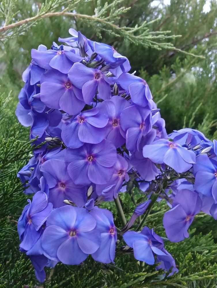 4,0; 100; СР; Голубовато-сиреневый красивый тон, легко меняет оттенок на голубой и синий в зависимости от освещения. Атласная фактура лепестков, цветки колесовидные. Соцветия красивой формы, крупные, плотные. Великолепен в саду!.. Лидер выставки ‘Мир Флоксов-2016’. Лучшее место для этого сорта в полутени, чем на полном солнце. (Марковский Ю.Б. 2014)